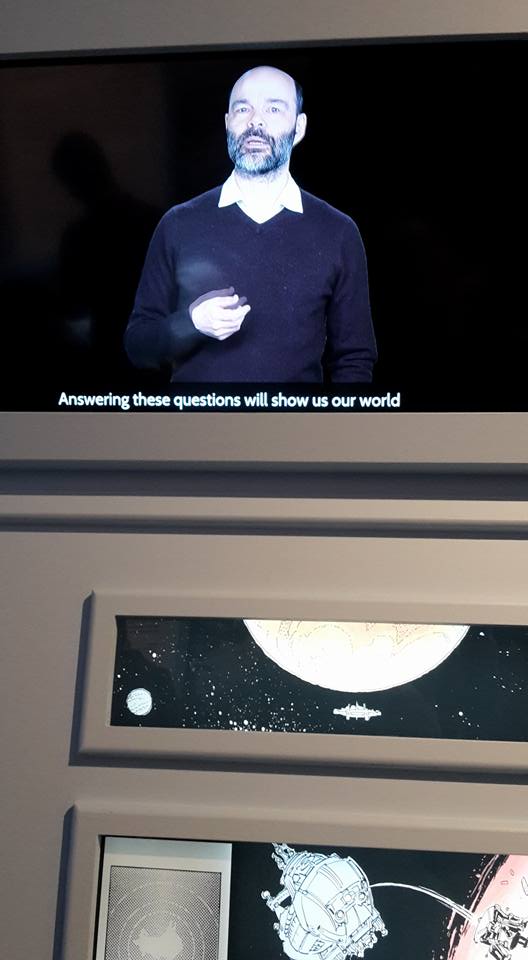 Les six alcôves autour de la salle de projection prennent littéralement vie si vous vous munissez d’un smartphone ou d’un tablette ( et que vous avez au préalable téléchargé une application ( gratuite). C’est un peu comme Pokémon Go, sauf que vous apercevrez et entendrez d’étranges créatures ou des vaisseaux spatiaux sur les murs. de même, si vous faites glisser une tablette fournie dans l’exposition sur une des planches, un scientifique apparaîtra et vous expliquera tout sur l’hypervitesse ou la théorie de la relativité.
